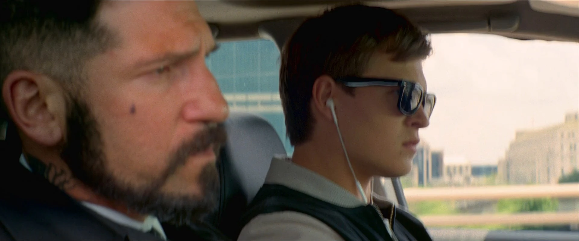 Cast: Ansel Elgort as Miles "Baby", Kevin Spacey as Doc, Lily James as Debora, Jon Hamm as Jason "Buddy" Van Horn, Jamie Foxx as Leon "Bats" Jefferson III, Eiza González as Monica "Darling" Castello, Jon Bernthal as Griff, Flea as Eddie "No-Nose", CJ Jones as Joseph, Sky Ferreira as Baby's Mom, Lanny Joon as J.D., R. Marcos Taylor as Armie, Micah Howard as Barista, Morgan Brown as Street Preacher, Morse Diggs as Morse Diggs, Lance Palmer as Baby's Dad, Hudson Meek as Young Baby, Viviana Chavez as Diner Waitress, Hal Whiteside as Cook, Clay Donahue Fontenot as Marine, Brigitte Kali Canales as Young Mother, Patrick R. Walker as Frat Boy #1, Ben VanderMey as Frat Boy #2, David Robert Lewis as Waiter, Big Boi as Restaurant Patron #1, Killer Mike as Restaurant Patron #2, Brogan Hall as Samm, Allison King as Nice Lady Teller, Paul Williams as The Butcher, Joe Loya as Security Guard, Andy McDermott as Freeze Cop, Christopher Beanland as Bullhorn Cop, Andrea Frye as Carjack Lady, Thomas E. Haynes as Anchor, Russell B. Spencer as Anchor, Cynne Simpson as Anchor, Keith Hudson as Diner Cop, Sidney Sewell as Hellcat Thug #1, Thurman Sewell as Hellcat Thug #2, Elijah Everett as Parking Garage Security Guard, Jon Spencer as Prison Guard, Walter Hill as Courtroom Interpreter (voice), Wilbur Fitzgerald as Judge, Jeff Chase as Jeffrey, Shellita Boxie as Bank Patron, Marshall Choka as Angry Man on Cellphone, Juliette Sicard as Student Pedestrian, Marvin E. West as State Trooper, Connie Lee as Upset Car Driver, James Blackshear as Music Store Clerk, Erica Frene as Dog Lady (uncredited), Elizabeth Davidovich as Monroe County (uncredited), Duke Jackson as Monroe County (uncredited), Colin Lacativa as Construction Worker (uncredited), Trey McGriff as Homeless Man on Bench (uncredited), Donald K. Overstreet as Man in Blue Truck (uncredited), Danny Le Boyer as Tequila Goon 3 (uncredited), David Conk as Tequila Goon 4 (uncredited), Troy Faruk as Goon #5 (uncredited), Mark Smith as Prisoner (uncredited), Kenneth Manos as Movement Specialist (uncredited), Arnold Montey as Pedestrian (uncredited), Nathaniel Perry as Tequila Goon 2 (uncredited), Kent Wagner as Prisoner (uncredited), Whit Whitman as Prison Gaurd (uncredited), Perry Zulu Jr. as Cop #2 (uncredited)