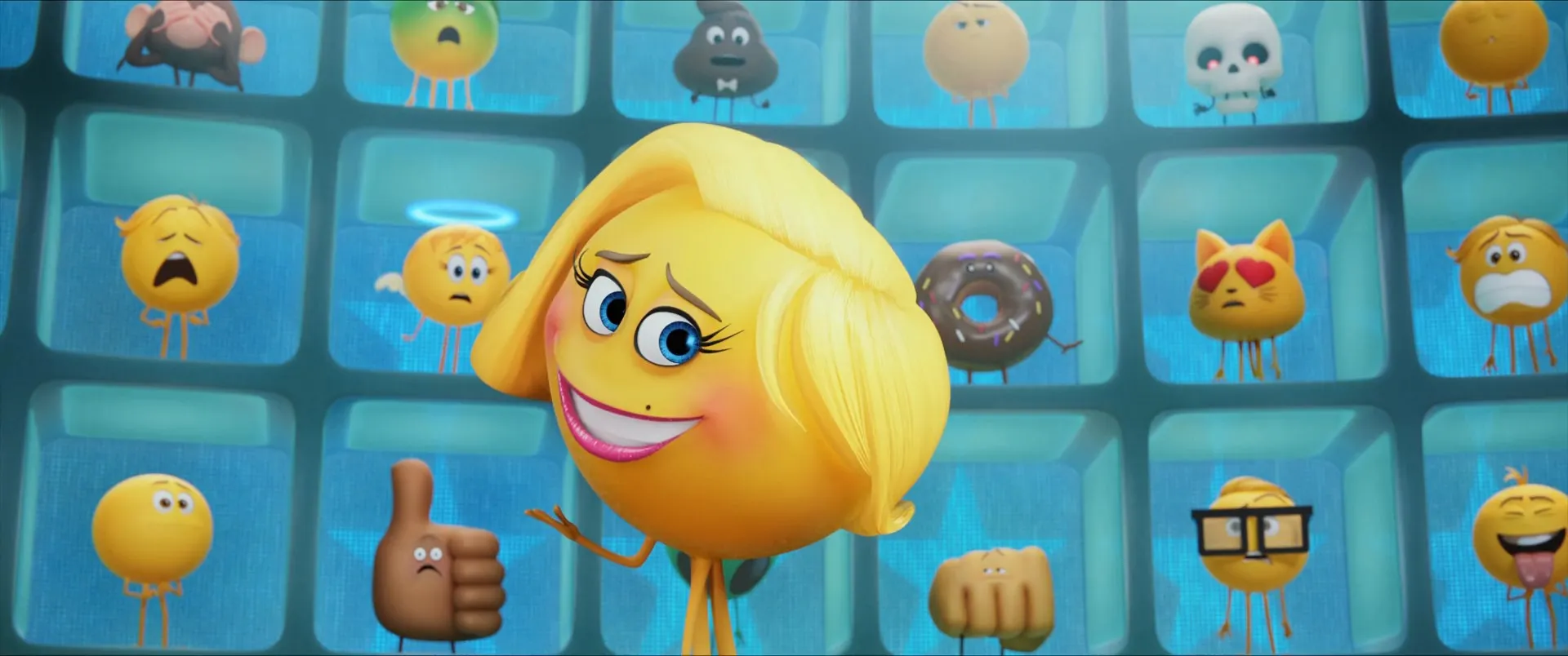 Cast: T.J. Miller as Gene (voice), James Corden as Hi-5 (voice), Anna Faris as Jailbreak (voice), Maya Rudolph as Smiler (voice), Steven Wright as Mel Meh (voice), Jennifer Coolidge as Mary Meh (voice), Jake T. Austin as Alex (voice), Christina Aguilera as Akiko Glitter (voice), Sofía Vergara as Flamenco Dancer (voice), Patrick Stewart as Poop (voice), Rob Riggle as Ice Cream (voice), Sean Hayes as Steven (voice), Tati Gabrielle as Addie (voice), Jude Koyaute as Poop Jr. (voice), Rachael Ray as Spam (voice), Jeff Ross as Internet Troll (voice), Melissa Sturm as Angel / Phone Store Employee (voice), Tony Leondis as Laughter / Broom / Pizza (voice), Sean Giambrone as Travis (voice), Timothy Durkin as Mr. Schnoebelen (voice), Liam Aiken as Ronnie Ram Tech (voice), Wendell Brooks as Ram Tech Bouncer (voice), Tarek Bishara as Fist Bump (voice), Kevin Chamberlin as Gavel (voice), William Townsend as Rocket (voice), Adam Brown as Flashlight / Trojan Horse (voice), William J. Caparella as Alien (voice), Joe Whyte as Red Wagon (voice), Conrad Vernon as Trojan Horse (voice), Kate Gorney as Heart Eyes (voice), Rich Dietl as Nerd Emoji (voice), Derek Mio as Elephant (voice), Paige Eileen Caparella as Cat Heart Eyes (voice), Bob Bergen as Additional Voices (voice), Debi Derryberry as Additional Voices (voice), Jess Harnell as Additional Voices (voice), Phil LaMarr as Additional Voices (voice), Laraine Newman as Additional Voices (voice), Tara Strong as Additional Voices (voice), Fred Tatasciore as Fried Shrimp Emoji / Additional Voices (voice), Elizabeth Daily as Additional Voices (voice), Carlos Alazraqui as Additional Voices (voice), Keith Anthony as Additional Voices (voice), Eric Bauza as Additional Voices (voice), David Boat as Additional Voices (voice), Terri Douglas as Additional Voices (voice), Keith Ferguson as Additional Voices (voice), Amy Hill as Additional Voices (voice), John Kassir as Additional Voices (voice), Josh Keaton as Additional Voices (voice), Mona Marshall as Additional Voices (voice), Scott Menville as Additional Voices (voice), Max Mittelman as Additional Voices (voice), Alicyn Packard as Additional Voices (voice), Paul Pape as Additional Voices (voice), Debra Wilson as Additional Voices (voice), Matthew Wood as Additional Voices (voice), John Cramer as Additional voices (voice), Jeff Fischer as Additional voices (voice), Bill Farmer as Additional voices (voice)